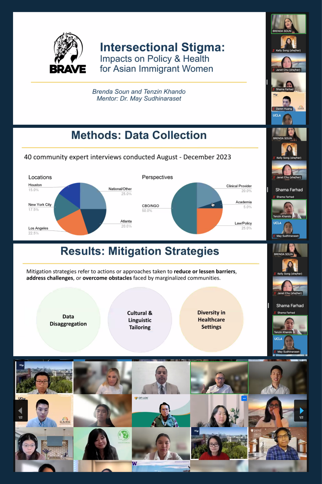 At the 2024 Colloquium, our BRAVE researchers Brenda Soun and Tenzin Khan discussed findings from our Community Expert Interviews in their presentation “Intersectional Stigma and the Impacts on Policy and Health for Asian Immigrant Women.”